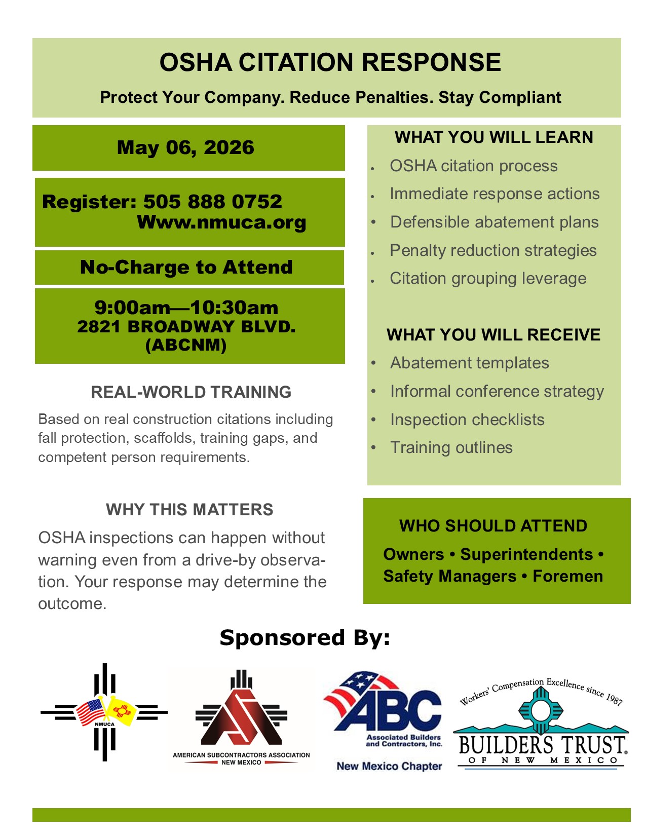 REAL-WORLD TRAINING Based on real construction citations including fall protection, scaffolds, training gaps, and competent person requirements. WHY THIS MATTERS OSHA inspections can happen without warning even from a drive-by observation. Your response may determine the outcome. WHAT YOU WILL LEARN OSHA citation process Immediate response actions • Defensible abatement plans Penalty reduction strategies Citation […]